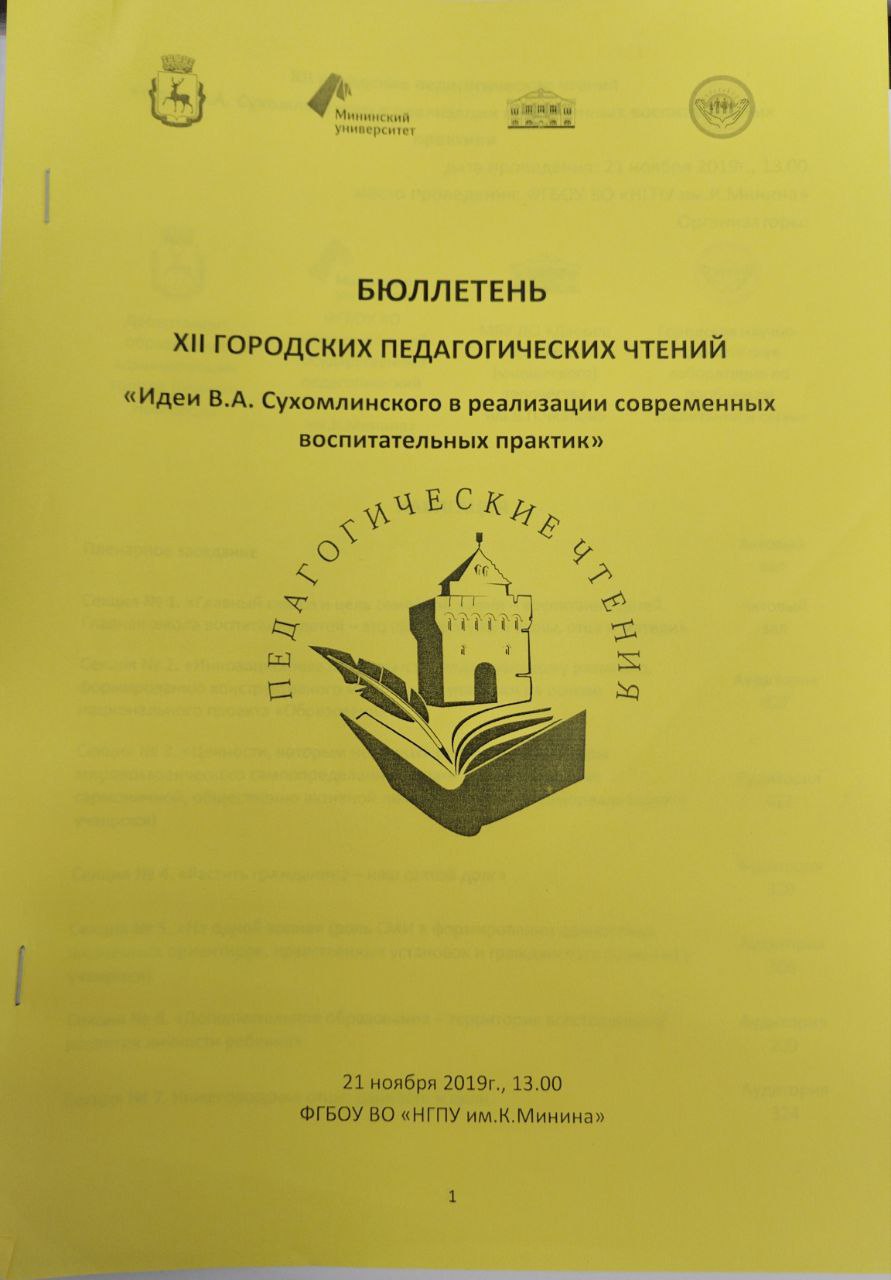 ХII городские педагогические чтения «Идеи В.А.Сухомлинского в реализации современных воспитательных практик»